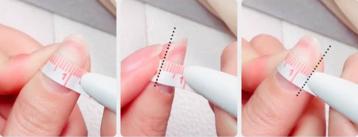 Place a piece of paper against your nail bed and mark the two widest points with a pen. Use a ruler to measure the distance between the marks.