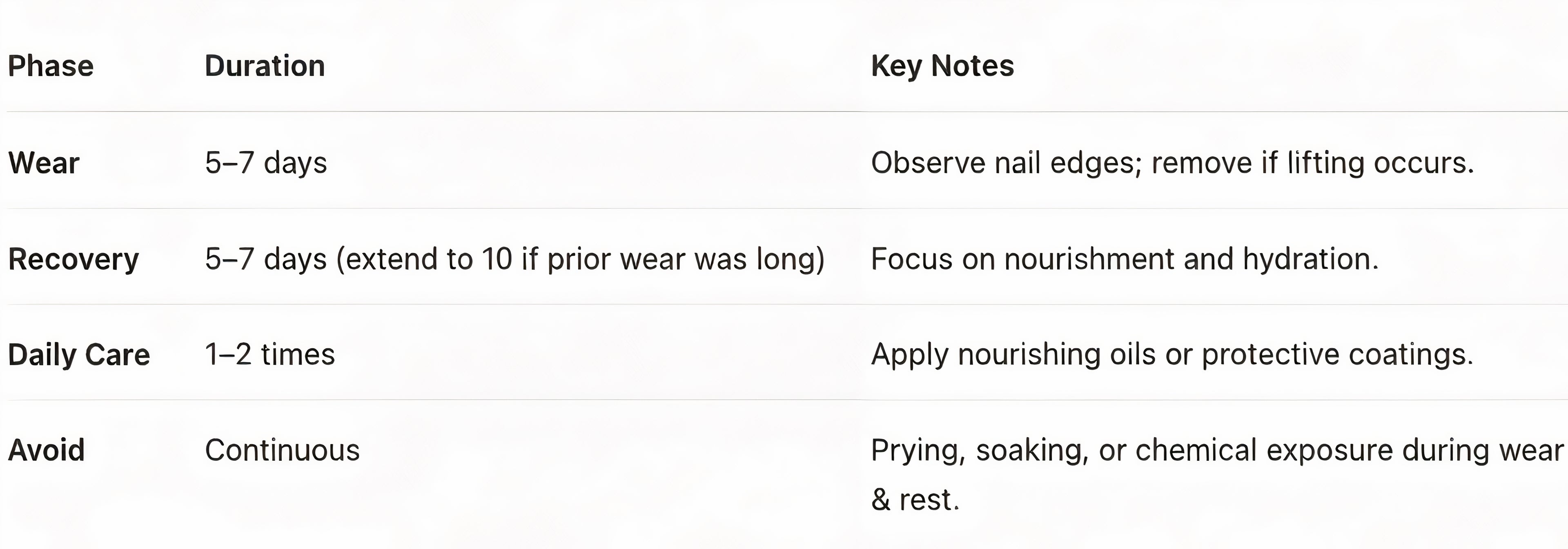We recommend that while you enjoy the beauty of your manicure, you also take gentle care of your hands and maintain a perfect balance between wearing and resting, so that your fingertips always reflect health and elegance.