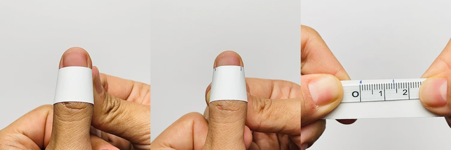 Place a measuring tape horizontally across the widest part of your nail bed. Record the measurement in millimeters (mm).